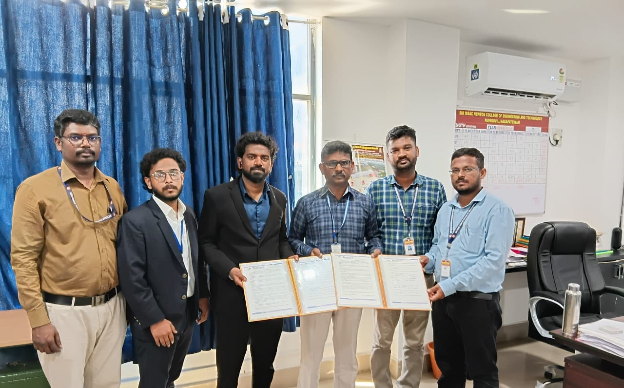On-Campus Placement Drive for TVS WHEELS INDIA LTD, Chennai on 12.12.2025 at Placement Cell Department of Electronics and Communication Engineering organises Two days hands-on workshop on "PCB Design Process and Prototyping"( 24-10-2025 and 25-10-2025) On-Campus Placement Drive – Delphi TVS, Chennai. 📅 Date: 14.10.2025 ⏰ Time: 10:00 AM 📍 Venue: Conference Hall 5-Day Skill Training Program for II-Year Students — BIT Trainers | Sir Issac Newton College of Engineering & Technology One-Day Workshop on Innovative Thinking and Implementing IPR Registration Icon Registration commence. SkillRack-Powered Training – Students preparing for higher package opportunities are receiving advanced programming practice, aptitude development, and communication training. Residential Placement Training Launched – From 10.09.2025, our students are undergoing intensive training in programming, aptitude, and communication skills in collaboration with SkillRack online platform. Department of Mechanical Engineering,a second-year student Mr.J. Tamilarasan,has secured First Place in the CM Trophy – Men’s District Level Silambam Competition Recognized Under Section 12(B) By UGC Online Faculty Development Program on "IOT Applications Powered by AI"-[28.07.2025 - 01.08.2025] Department of Mechanical Engineering of our institution has been recognized as a Research Department By Anna University Autonomous Status Conferred By UGC Online Faculty Development Programme on '6G Wireless Networks: Fundamentals, Trends, and Challenges' – [07-07-2025 to 11-07-2025]