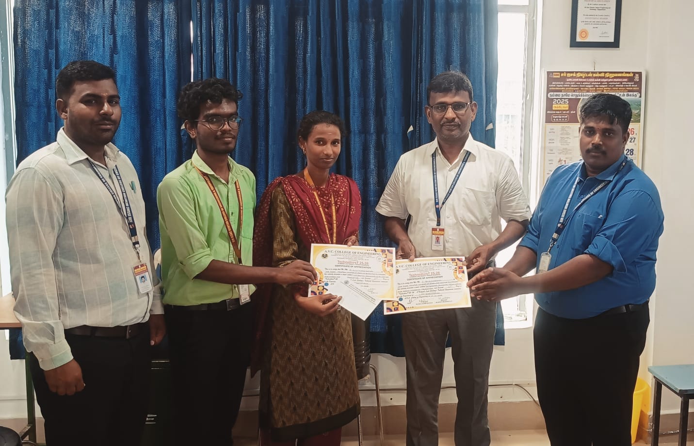At AVC College of Engineering, our talented students Monish and Hariharan (III Year CSE) secured the 1st Prize in the Debugging event, showcasing their excellent problem-solving skills and technical expertise.